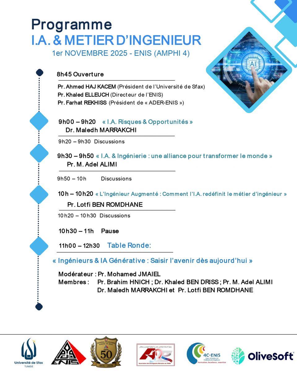 C’est dans ce sens, et à l’occasion du cinquantenaire de l’Etablissement Démo, que l’Association Des Enseignants Retraités de l’Etablissement Démo (ADER-Etablissement Démo) organise, le 1er novembre 2025, une matinée d’étude visant à mettre en exergue l’impact de l’intelligence artificielle sur le métier d’ingénieur et à dégager des recommandations pour son intégration efficace dans le processus de formation de nos futurs diplômés afin qu’ils puissent tirer parti de cette révolution et en relever les défis.